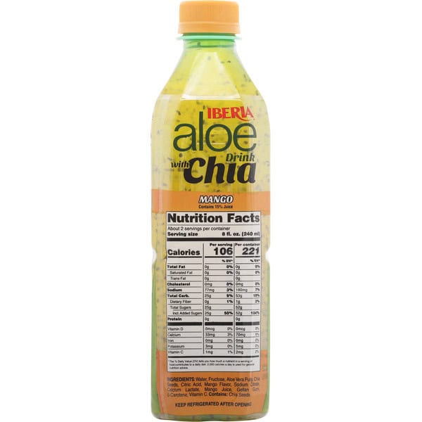 Aloe Vera is a succulent plant that can be traced back 6,000 years to ancient Egypt. Chia seeds started being cultivated by the Aztecs in pre-Columbian times. Iberia Aloe Drink with Chia brings to you a great combination of these two great products: a delicious and unique aloe vera taste with the healthy and popular super food chia.