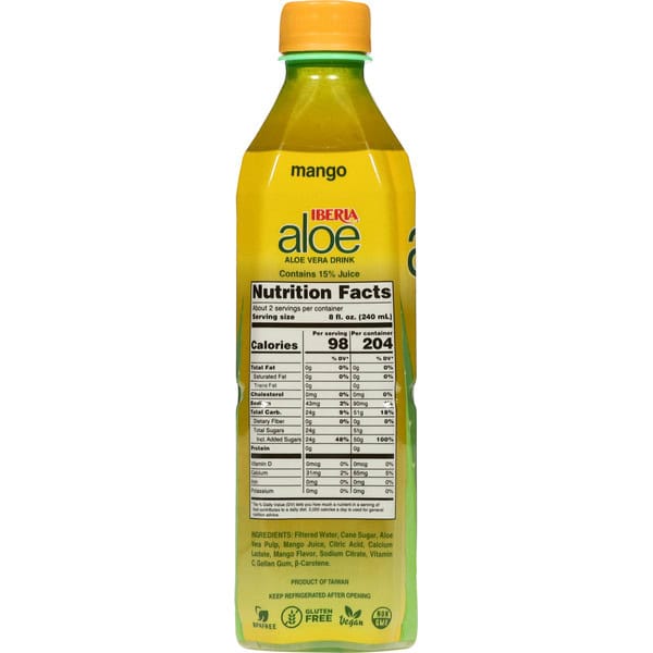 Indulge in the refreshing taste of Iberia Mango Aloe Vera Drink, a delightful combination that captures the essence of tropical flavors in a convenient 16.9 fl oz bottle. Perfect for on-the-go hydration, this drink is ideal for busy days, workouts, or simply enjoying at home. Crafted with real aloe vera and juicy mango, it provides a wholesome beverage experience without any artificial additives. This delicious drink not only quenches your thirst but also offers a revitalizing boost of hydration, making it a perfect companion for warm days or after exercise. Whether enjoyed chilled, mixed into cocktails, or blended into smoothies, Iberia Mango Aloe Vera Drink adds a delicious tropical flair to your routine. Treat yourself to this refreshing beverage and experience the perfect blend of taste and nourishment!