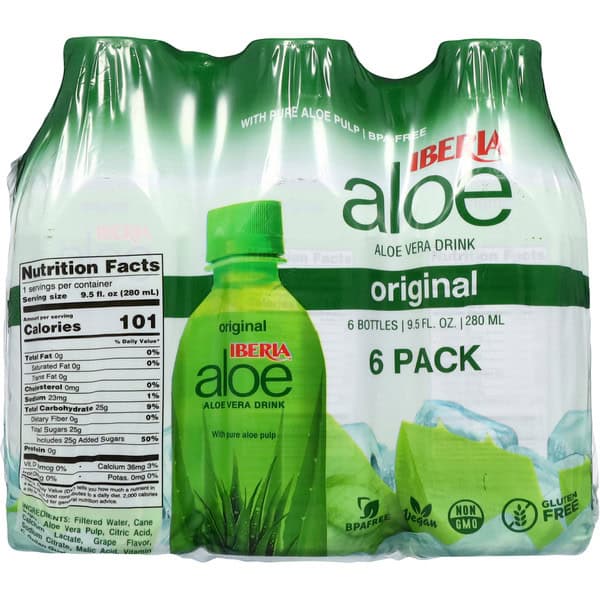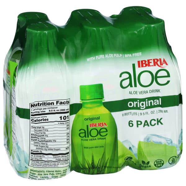 Quench your thirst with Iberia Original Aloe Vera Drink with Pure Aloe Pulp, a refreshing beverage that combines the soothing properties of aloe vera with the delightful texture of pure aloe pulp. Packaged in a convenient 6-pack of 9.5 fl oz bottles, this drink is perfect for enjoying at home, taking to work, or sipping during outdoor adventures. Crafted with high-quality aloe vera, it delivers a wholesome, natural taste without any artificial additives. Whether you’re looking for hydration after a workout or a revitalizing drink on a hot day, this aloe vera beverage provides a delicious boost anytime. Enjoy it chilled, blend it into smoothies, or mix it into cocktails for a refreshing twist. Treat yourself to the soothing goodness of Iberia Original Aloe Vera Drink and elevate your hydration routine!
