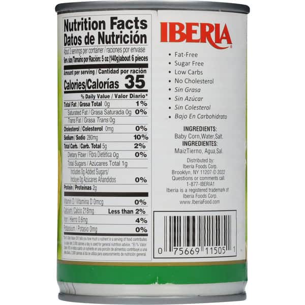 Iberia Whole Baby Corn offers a delightful and nutritious addition to your meals in a convenient 15 oz can. These tender, whole baby corns provide a satisfying crunch and subtle sweetness, making them perfect for salads, stir-fries, or as a snack. Ready to eat and low in calories, they are high in fiber and free from artificial preservatives, ensuring a clean and healthy choice. Versatile and easy to incorporate into various culinary creations, Iberia Whole Baby Corn adds color and texture to soups, casseroles, and appetizers, making it an ideal option for any dish. Enjoy the convenience and flavor of Iberia Whole Baby Corn today!