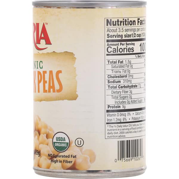 Rehydrated Dried Chick Peas*, Water, Salt, *from Organic Agriculture
