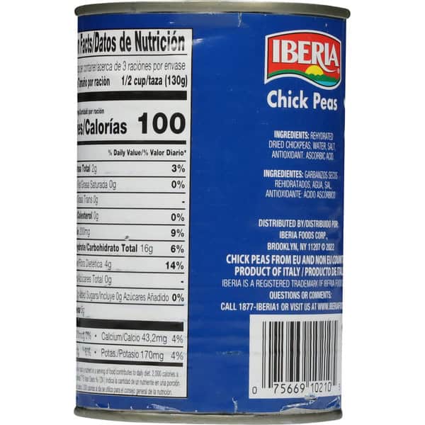 Iberia Premium Chick Peas 15 oz offer a mild, nutty flavor and are packed with protein and fiber for a nutritious boost. Ready-to-use, these versatile chickpeas are perfect for making hummus, adding to salads, or enhancing curries and stews.