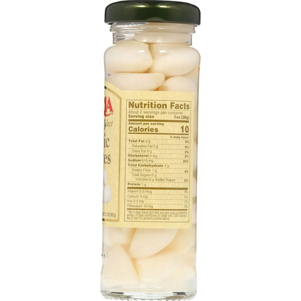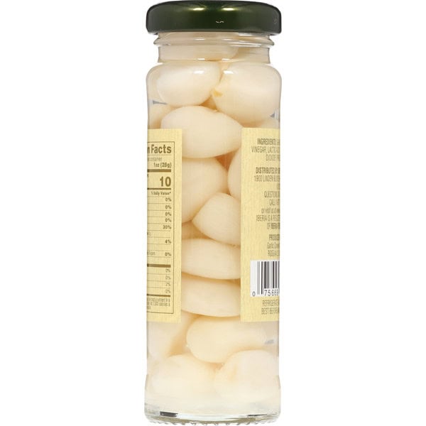 Garlic Cloves, Water, Salt, Vinegar, Preservatives: Lactic Acid. Acidulants: Citric Acid, Acetic Acid.