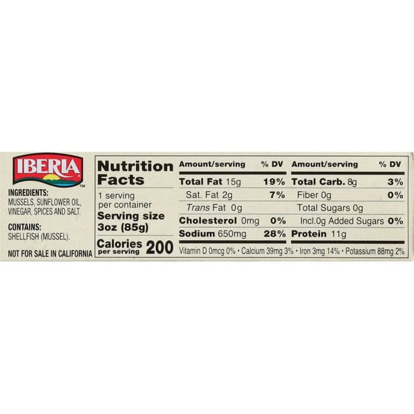 Iberia Mussels in Pickled Sauce deliver a bold and tangy seafood experience in a convenient 4 oz can. These succulent mussels are perfectly preserved in a flavorful pickled sauce, making them an ideal choice for quick snacks or gourmet appetizers. Ready to eat and high in protein, they fit seamlessly into any meal or can be enjoyed straight from the can. With no artificial preservatives, you can savor a clean and wholesome option. Experience the unique taste of Iberia Mussels in Pickled Sauce and elevate your culinary creations today!