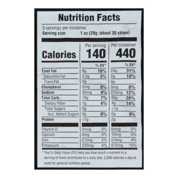 Premium Plantains, Vegetable Oil (may Contain One Or More Of The Following: Cottonseed, Corn, Palm, Canola, Soybean And/or Sunflower), Garlic Powder Natural Flavor (refined Sea Salt, Garlic Powder, Onion Powder, Maltodextrin Silicon Dioxide, Garlic Oleoresin, Onion Oleoresin), Sea Salt
