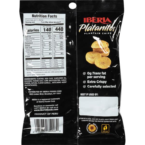 Savor the irresistible taste of Iberia Garlic Plantain Chips, a delicious snack that combines the crunchiness of plantains with the bold flavor of garlic. Each 3 oz bag is filled with high-quality chips, crafted without artificial flavors or preservatives, ensuring a wholesome and flavorful experience. Perfect for on-the-go snacking, these chips fit easily into lunchboxes or are great for picnics. Enjoy them straight from the bag, pair them with your favorite dips, or use them to add a delightful crunch to salads and other dishes. Plus, they’re gluten-free, making them a guilt-free indulgence for everyone. Elevate your snacking game with Iberia Garlic Plantain Chips and enjoy a tasty treat that packs a flavorful punch!