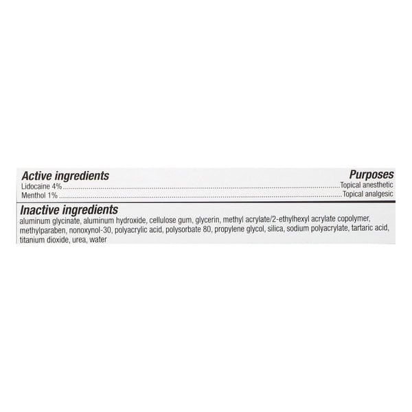 Aluminum Glycinate, Aluminum Hydroxide, Cellulose Gum, Glycerin, Methylparaben, Peg-40 Hydrogenated Castor Oil, Polyacrylic Acid, Polysorbate 80, Propylene Glycol, Ricinus Communis (castor) Seed Oil, Silica, Sodium Polyacrylate, Tartaric Acid, Titanium Dioxide, Urea, Water
