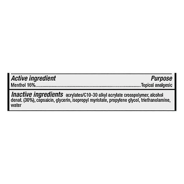 Acrylates/c10-30 Alkyl Acrylate Crosspolymer, Capsaicin, Glycerin, Isopropyl Myristate, Propylene Glycol, Sd Alcohol 40 (30%), Triethanolamine, Water (245-256)