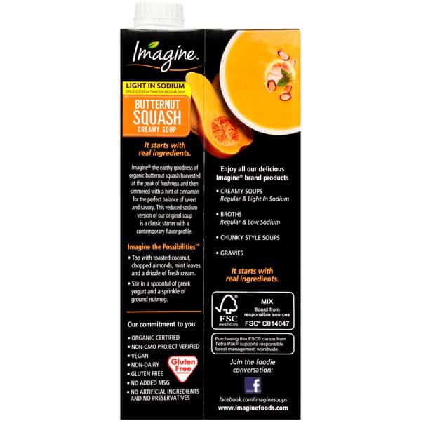 Imagine® the earthy goodness of organic butternut squash harvested at the peak of freshness and then simmered with a hint of cinnamon for the perfect balance of sweet and savory. This reduced sodium version of our original soup is a classic starter with a contemporary flavor profile.