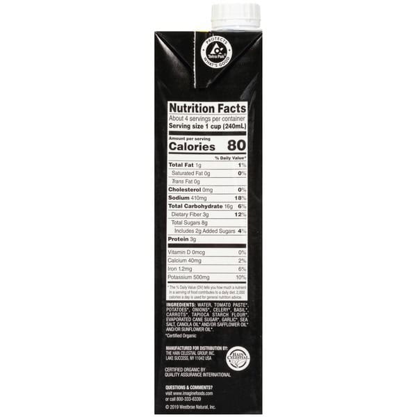 Imagine® organic tomatoes and garden-grown basil blended together in a rich, fragrant soup made from a medley of select organic vegetables. It’s a traditional American favorite transformed for today’s palate.
