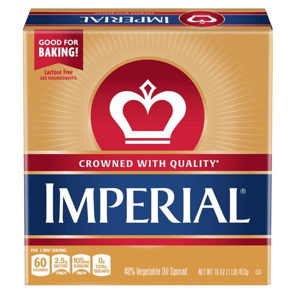 Imperial Sticks are gluten-free, cholesterol-free, and has a taste the whole family can enjoy and feel great about eating. Made with real, simple ingredients, it is sure to fit in well with a variety of your favorite recipes. It contains no trans-fat per serving, no partially hydrogenated oils and, just like Imperial’s name, is crowned for its quality and deliciousness.
