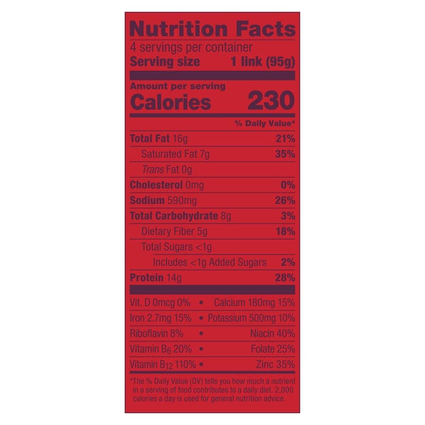• 14 g protein and 5 g dietary fiber in every juicy link
