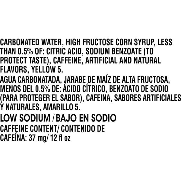 Carbonated Water, High Fructose Corn Syrup, Less Than 0.5% Of: Citric Acid, Sodium Benzoate (to Protect Taste), Caffeine, Artificial And Natural Flavors, Yellow 5
