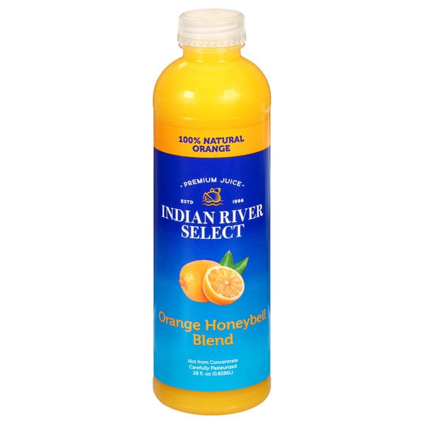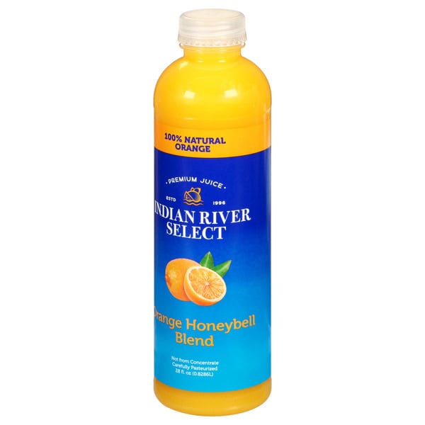 Gluten free. 100% natural orange. Not from concentrate. Carefully pasteurized. Estd 1996. Our juice is 100% pure juice. We use peak season fruit, gently squeeze it, blend it and pasteurize it. We never add any flavor packs or preservatives. Pasteurized. Contains juice from countries identified on the bottle neck. www.indianriverselect.com. Have a question or comment? Call 1-888-373-7426 or visit www.indianriverselect.com.