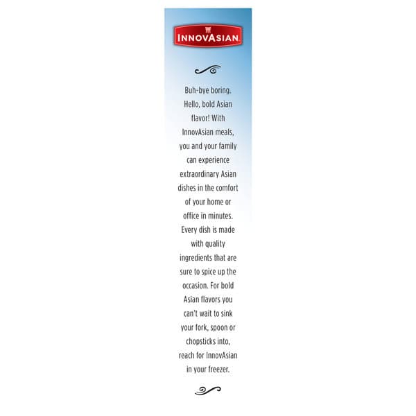 Buh-bye boring. Hello, bold Asian flavor! With InnovAsian meals, you and your family can experience extraordinary Asian-style dishes in the comfort of your home or office in minutes. Every dish is made with quality ingredients that are sure to spice up the occasion. For bold Asian flavors you can’t wait to sink your fork, spoon or chopsticks into, reach for InnovAsian in your freezer.