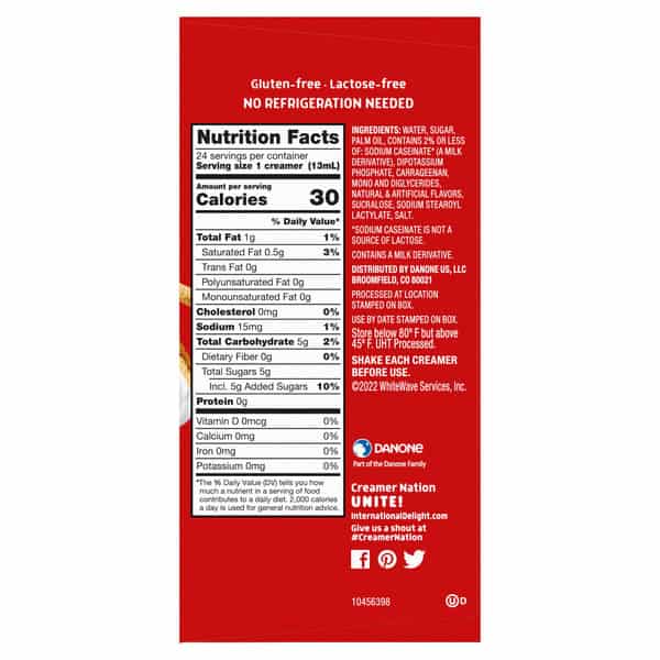 • SHARE THE JOY: International Delight liquid creamer is free from lactose and gluten (contains sodium caseinate, a milk derivative)