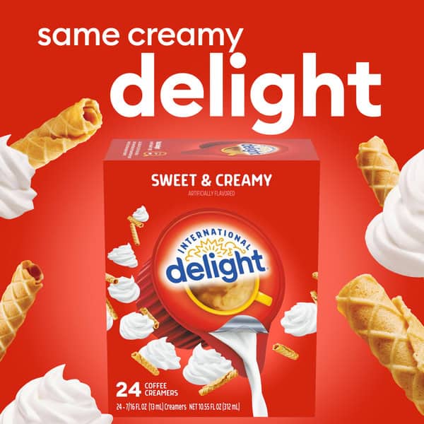 • CONVENIENT SINGLES: 24 pack of 0.44 fl oz singles of International Delight Sweet & Creamy Coffee Creamer