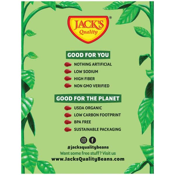 USDA Organic. Certified Organic By: Quality assurance international. Low sodium. Non GMO project verified. nongmoproject.org. Fully cooked. Ready to serve. Food safe. nongmoproject.org. jacksqualitybeans.com/recipes. recyclecartons.com Recipe continued at: jacksqualitybeans.com/recipes. Kick The Can: Cartons are a safe and sensible alternative to metal cans for food packaging. Cartons offer a variety of benefits that are good for you, good for the planet and good for your dish! Store almost 2 cartons in your pantry for every 1 metal can. No can opener required. Made main& from renewable materials. www.jacksqualitybeans.com. Tetra pak. Tetra recart. Tetra Pak: Protects. Whats good. Recyclable. Only where facilities exist. Visit recyclecartons.com to see if recyclable in your area. FSC: Mix board. Product of Italy.