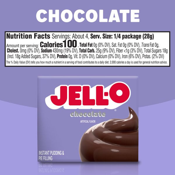 • Jell-O Chocolate Artificially Flavored Instant Pudding & Pie Filling Mix is a sweet treat on its own as well as a perfect ingredient for dessert recipes