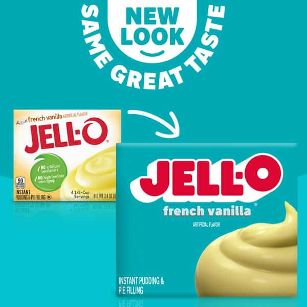 Snack happy. Jell-O French Vanilla Artificially Flavored Instant Pudding Mix & Pie Filling tastes delicious whether you enjoy it as a treat or use it as an ingredient in your favorite dessert recipes. Add some wonder to your day with a delicious artificially flavored French vanilla dessert. Fun to make with your kids, our artificially flavored French vanilla pudding mix can also be used to create a poke cake, tasty crepes or French vanilla pie filling. Our artificially flavored French vanilla pudding is ready in as little as five minutes. Simply stir milk into the pudding mix and allow to set. Every Jell-O pudding mix comes packaged in a 3.4-ounce sealed pouch. Pudding fun in every bite.