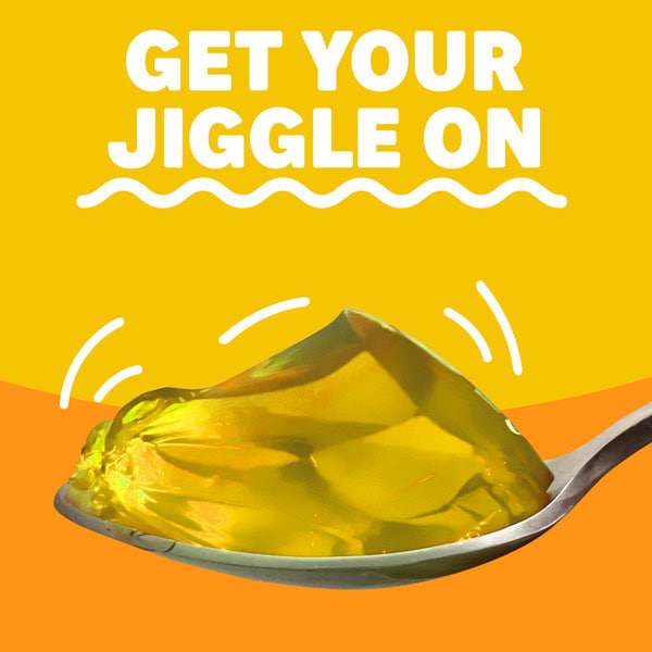 Snack happy. Jell-O Island Pineapple Artificially Flavored Gelatin Dessert Mix lets you add some wonder to your day with a delicious snack. Spoon up a smile with our artificially flavored pineapple Jell-O gelatin that contains 90 calories per serving. Our colorful, jiggly treat is perfect for everyday snacking or special occasions with family and friends. Additionally, our gelatin dessert mix is a versatile ingredient for creating desserts like poke cakes, parfaits, pretzel salads, rainbow layer cakes and more. Our artificially flavored pineapple gelatin dessert is easy to prepare. Simply add 1 cup boiling water to the gelatin mix, stir for 2 minutes until completely dissolved, stir in 1 cup cold water, then refrigerate for 4 hours or until firm. Each Jell-O gelatin dessert mix is individually packaged in a 3-ounce sealed pouch and makes 4, 1/2-cup servings.