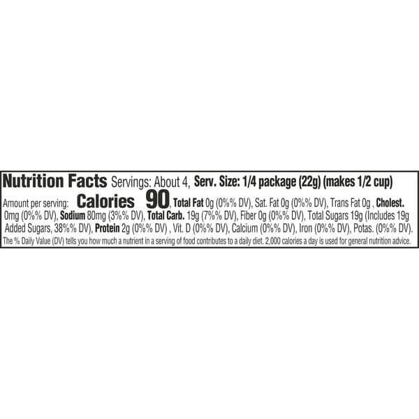 • Each Jell-O gelatin dessert mix is individually packaged in a sealed pouch for freshness