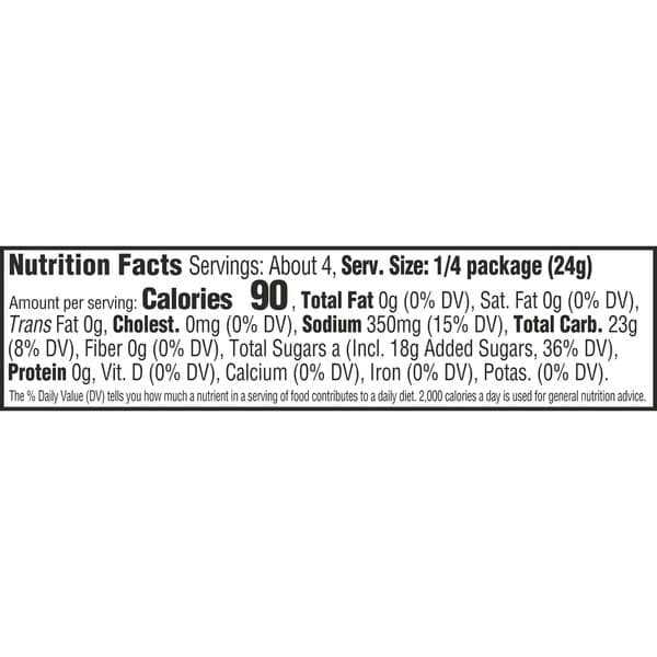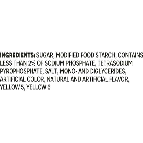 Sugar, Modified Food Starch, Contains Less Than 2% Of Sodium Phosphate, Tetrasodium Pyrophosphate, Salt, Mono- And Diglycerides, Artificial Color, Natural And Artificial Flavor, Yellow 5, Yellow 6