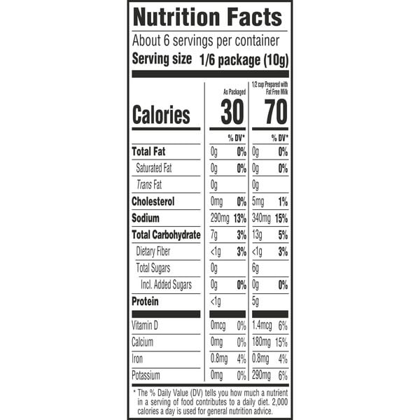• Contains 2/3 fewer calories than regular Jell-O Instant Chocolate Pudding; as packaged, this product contains 30 calories, regular product contains 100 calories