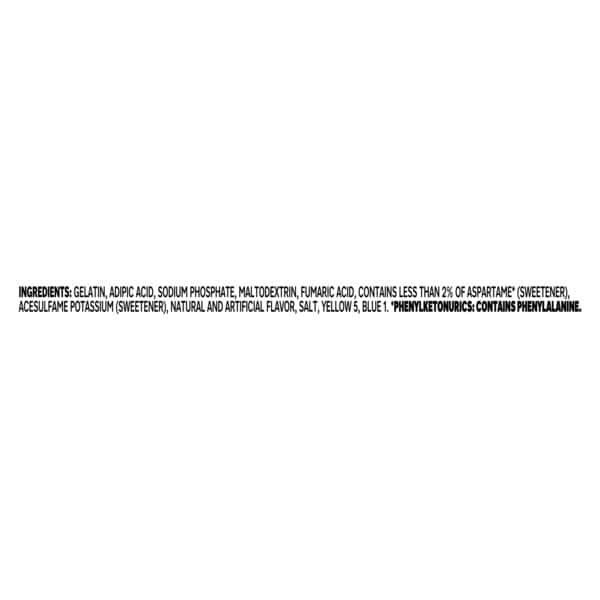Gelatin, Adipic Acid, Sodium Phosphate, Maltodextrin, Fumaric Acid, Contains Less Than 2% Of Aspartame* And Acesulfame Potassium (sweeteners), Natural And Artificial Flavor, Salt, Yellow 5, Blue 1, *phenylketonurics: Contains Phenylalanine