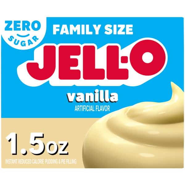 • One 1.5 oz box of Jell-O Zero Sugar Vanilla Artificially Flavored Instant Reduced Calorie Pudding Mix & Pie Filling