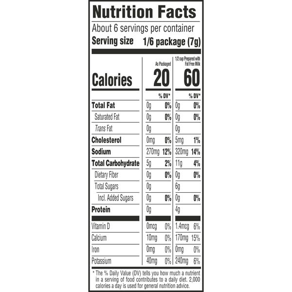 • Contains 2/3 fewer calories than regular Jell-O Instant Chocolate Pudding; as packaged, this product contains 20 calories, regular product contains 100 calories