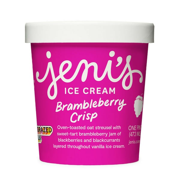 Brambleberry Crisp is inspired by the brambly berry bushes that litter the hillsides of the Appalachian foothills—the kinds of purple berries Jeni used to pick as a child. The sweet vanilla ice cream is made with high-quality vanilla from Madagascar and oven-toasted, brown sugar oat streusel is based on Jeni’s family recipe. The jam is made just for us—including grown-for-us blackberries from our longtime farm partner, Hirsch Fruit Farm. All of these elements come together to form a flavor reminiscent of a fresh berry fruit crisp with a scoop vanilla ice cream. First introduced in 2009 during our Foggy Mountain Collection, which highlighted the flavors and culture of Appalachia, Brambleberry Crisp was such a superstar that we had to keep it on the menu full-time.