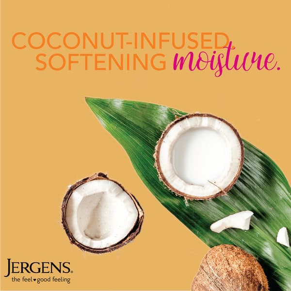 Transport yourself to an island paradise with Jergens Hydrating Coconut Body Lotion, lightly scented with tropical coconut. This oil-infused, non-greasy lotion hydrates instantly and leaves your skin feeling silky smooth. Blended with the power of coconut water and nourishing coconut oil, Jergens moisturizing lotion targets dry skin and leaves it looking healthy, radiant and supple. This is the perfect moisturizing lotion for dry skin. If you have dry hands, elbows or legs, get relief fast with Jergens Hydrating Coconut Hand Lotion. This lotion for dry skin absorbs quickly without feeling tacky, sticky or greasy. Our dermatologist tested body lotion is vegan friendly, cruelty free and doesn’t contain parabens and artificial dyes. Just smooth Jergens Hydrating Coconut Hand and Body Lotion for dry skin on your dry skin daily for refreshed, hydrated skin. OUR STORY: Since 1901, Jergens skin care has been the trusted brand for comforting moisture. We bottle all that up into the Feel-Good Feeling of Jergens – soothing relief from dryness, a touch of summer color, a fruity scent that makes Monday feel like Friday. We’re here to help you feel truly, deeply, skin-to-soul comfortable, with a few surprises along the way.