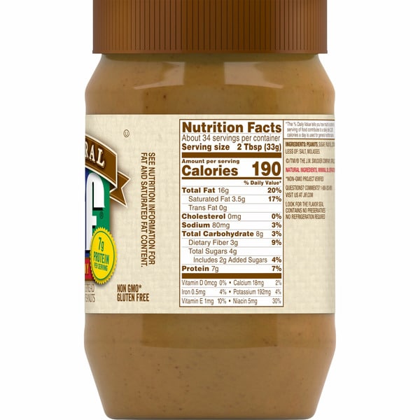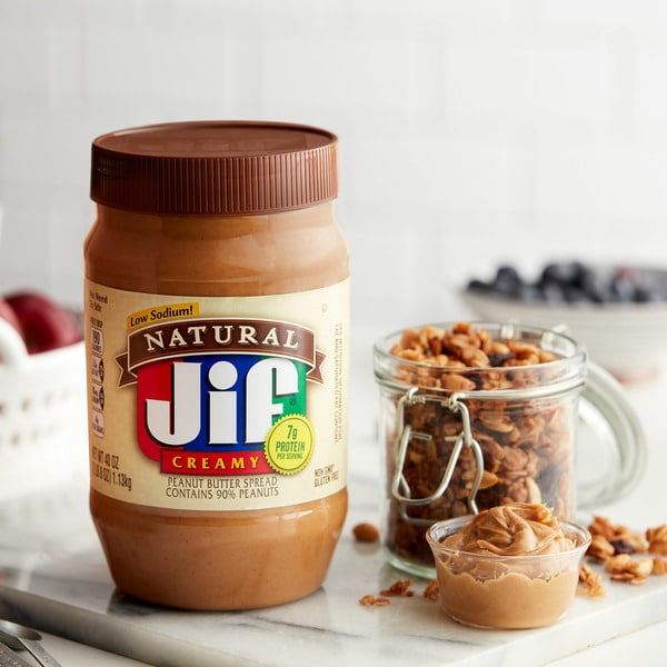 Spread the love! It’s easy to do with our Jif Natural Creamy Peanut Butter Spread – Contains 90% Peanuts, made with just five ingredients and 90% peanuts for a naturally delicious taste with no stirring required. No other peanut butter will do, so it’s a no-brainer that you’ll enjoy this classic peanut butter taste paired with jelly or spread on your favorite veggies and fruits. This peanut butter spread has an irresistible peanut taste the entire family will enjoy. Jif Natural Creamy Peanut Butter Spread is That Jif’ing Good, making it perfect for a variety of recipes from simple sandwiches to delightful baked goods, dolloped on celery, or just on its own straight from the jar. Plus, this peanut butter spread is natural, contains no preservatives, and has 7g protein (7% DV) per serving (See Nutrition Information For Fat And Saturated Fat Content), so you’ll definitely want to stock up.
