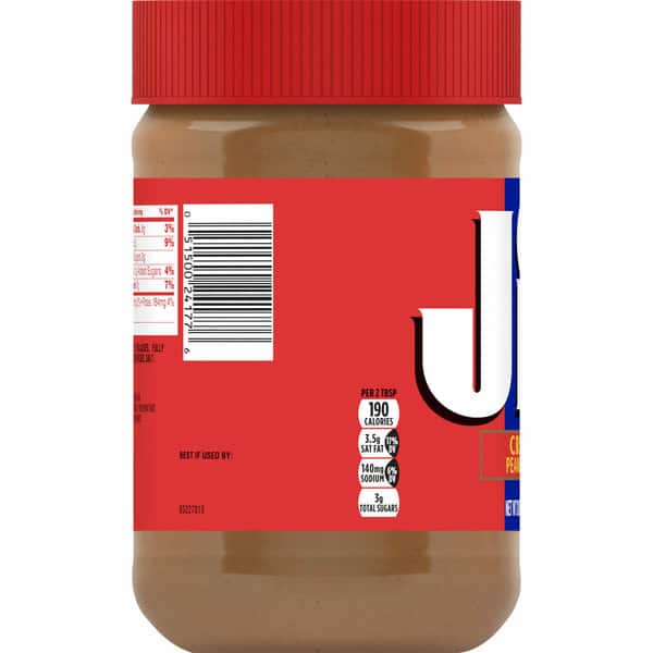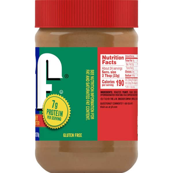 Spread the love! It’s easy to do with our Jif® Creamy Peanut Butter, full of that mouthwatering fresh roasted peanut taste you know the whole family enjoys. No other peanut butter will do, so it’s a no-brainer that you’ll enjoy this classic peanut butter taste paired with jelly or create your own show-stopper snack with a quick spread on veggies or fruit. Just one bite of this smooth, creamy peanut butter will remind you of your best childhood memories. From a brand that has been trusted for generations, Jif® Creamy Peanut Butter is That Jif’ing Good™, making it perfect for a variety of recipes from simple sandwiches to delightful baked goods, dolloped on celery, or just on its own in spoonfuls straight from the jar. Plus, this peanut butter is gluten free, contains no artificial preservatives and has 7g protein (7% DV) per serving (See Nutrition Information For Fat And Saturated Fat Content ), so you’ll definitely want to keep the goodness going and stock up on this good stuff.
