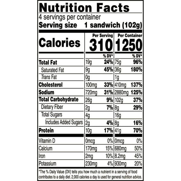 Microwave: ALWAYS FOLLOW HEATING INSTRUCTIONS. KEEP FROZEN UNTIL READY TO USE. MAY BE REFRIGERATED TO THAW. DO NOT REFRIGERATE LONGER THAN 3 DAYS. MicrowaveDirections were developed using an 1100 watt oven. Ovens vary; heat times may need to beadjusted. If additional time is needed, microwave 5 seconds at a time until hot. FROM FROZEN1. PREPARE:Remove wrapper. Wrap in paper towel. 2. DEFROST:DEFROST (30% Power) 90 SECONDS. Turn sandwich over. 3. HEAT:Microwave on HIGH 50 seconds or until hot. Let stand for 2 minutes. Enjoy! FROM REFRIGERATED1. PREPARE:Remove wrapper. Wrap in paper towel. 2. HEAT:Microwave on HIGH 50 seconds or until hot. Let stand for 2 minutes. Enjoy! CAUTION: PRODUCT WILL BE HOT