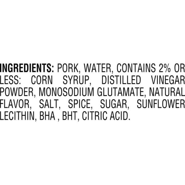 Pork, Water, Contains 2% Or Less Of: Salt, Dextrose, Vinegar Powder, Sugar, Spices, Natural Flavors.
