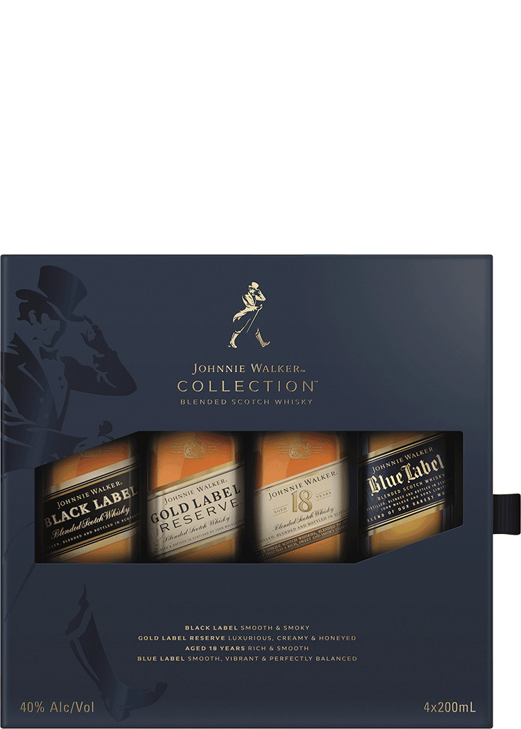 Scotland- A collection pack of four 200ml bottles of Johnnie Walker Black Label, Johnnie Walker Gold Label Reserve, Johnnie Walker Platinum and Johnnie Walker Blue Label. An incredible collection in a convenient pack. Perfect for gifting or to keep as your own.