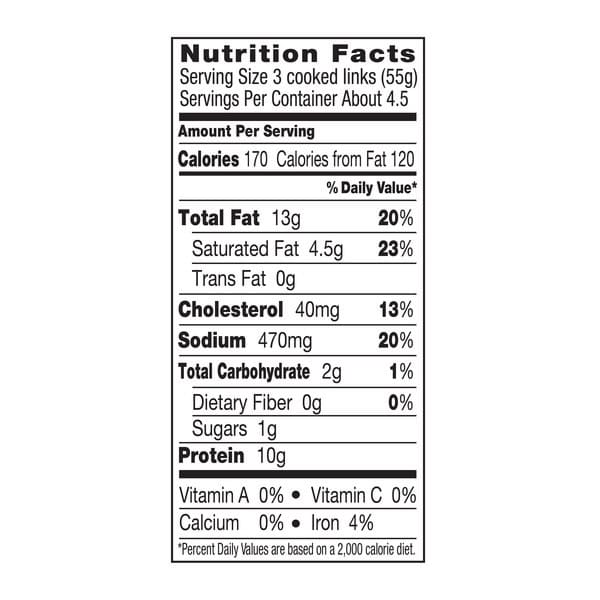 Preparation: Thaw product prior to cooking. Stovetop: Heat a nonstick skillet to medium-low. Add sausage. Cook for 12-16 minutes until sausage is browned and the internal temperature is 160 degrees F, turning links often. Air Fryer: Preheat air fryer to 390 degrees F. Place sausage in a single layer in air fryer basket. Cook for 5-6 minutes until sausage is browned and the internal temperature is 160 degrees F, turning links once. Oven: Preheat oven to 350 degrees F. Place sausage on a shallow baking pan. Bake for 12-15 minutes until sausage is browned and the internal temperature is 160 degrees F, turning links once.