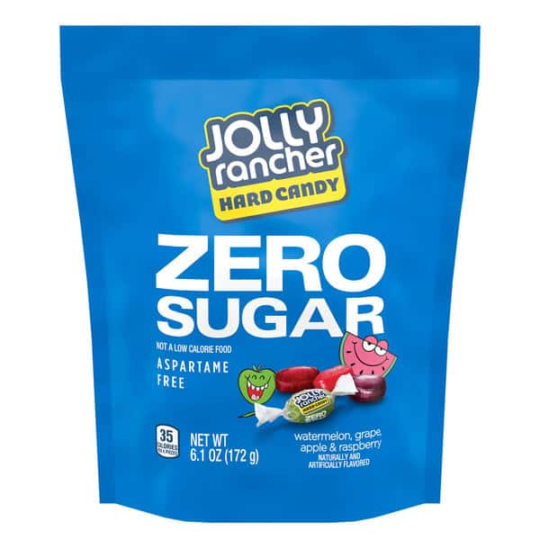 A mix of four fruity favorites for the whole family in just one bag of hard candy? You wouldn’t have thought it possible if you didn’t know JOLLY RANCHER candy. This bag of sugar free, individually wrapped fruit flavored hard candy will keep each delicious piece fresh until it’s time for a new bag. Featuring raspberry, apple, grape and watermelon flavors, JOLLY RANCHER Zero Sugar hard candy offers a combination of the undisputed classics you know and love with a sugar and aspartame free twist. Keep a bag with you on the go to share with friends, co-workers and family members throughout the day — but don’t forget to save a few candies for yourself during all of that sharing! These fruit flavored candies make the perfect candy bowl display all year thanks to vibrant colors and attractive JOLLY RANCHER wrappers. They’re also great sugar free treats for festive Christmas stockings, Easter baskets and plastic eggs, Valentine’s Day party favors and Halloween trick-or-treat bags for everyone you care about. If you want a small candy with a big taste to keep your taste buds busy during movie nights, lunch breaks and snack breaks, JOLLY RANCHER Zero Sugar hard candy is the treat for you.