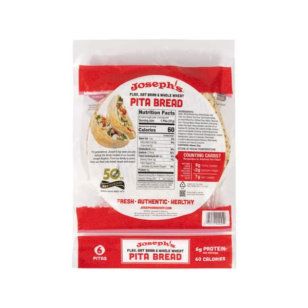 Joseph’s Flax, Oat Bran and Whole Wheat pita breads are one of the healthiest bread options around. Great for flatbread pizzas, pocket sandwiches, pita chips and more! Joseph’s Bakery, a family-owned business led by the third generation, has been making fresh, authentic, and healthy breads for over 50 years.