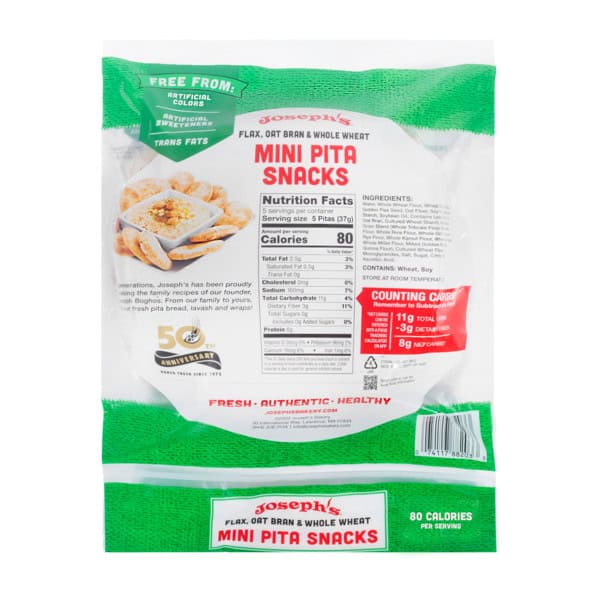 Joseph’s Free From Flax Mini Pita Snacks are a great addition to your party or get-together with family and friends. Mini Pita Snacks are the perfect size for dipping or topping with your favorite spreads and ingredients. Joseph’s Bakery, a family-owned business led by the third generation, has been making fresh, authentic, and healthy breads for over 50 years.