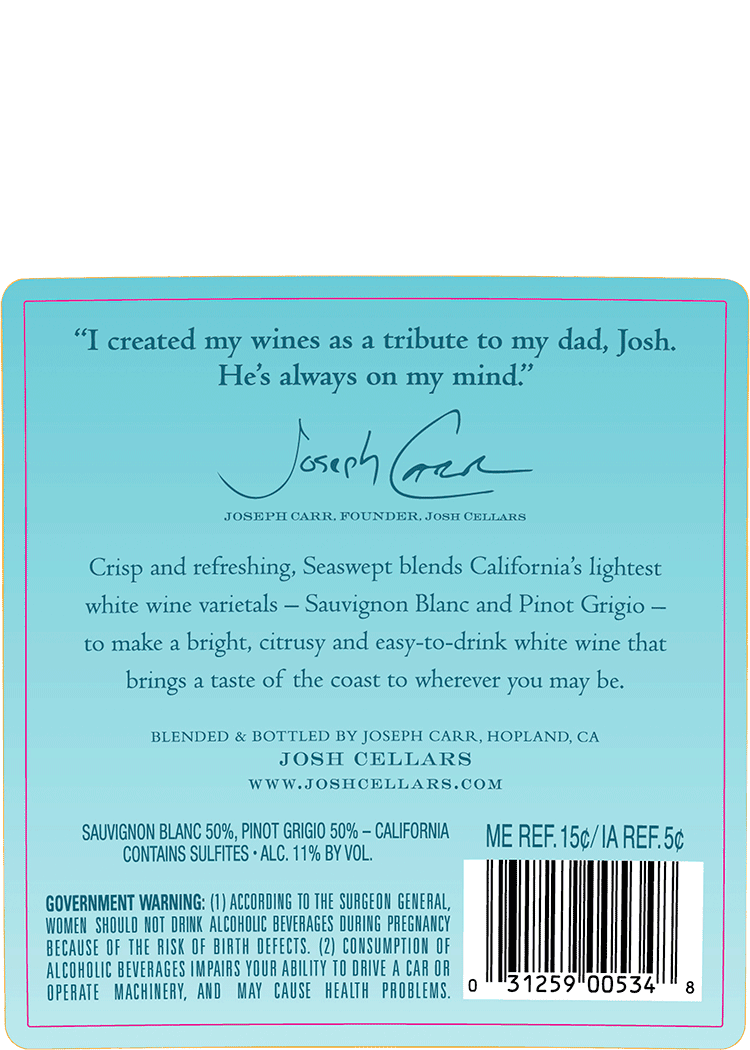 California – Crisp and refreshing, Seaswept blends California’s lightest white wine varietals. Sauvignon Blanc and Pinot Grigio – to make a bright, citrusy and easy-to-drink white wine that brings a taste of the coast to wherever you may be.