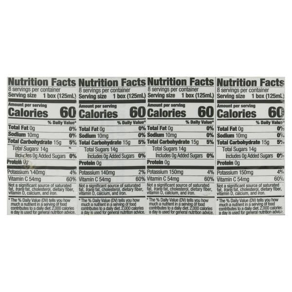 8-Apple. 8-Berry. 8-Fruit Punch. 8-Grape. 3 varieties of flavored juice blend from concentrate with other natural flavors & added ingredients. 1 juice from concentrate with added ingredients. No added sugar. Not a reduced calorie food. See nutrition facts for sugar and calorie content. No high fructose corn syrup. No artificial sweeteners. Our delicious sweetness comes straight from the fruit, that’s it! Goodness made Juicy. This product is a pasteurized.