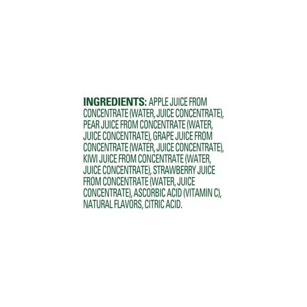 Apple Juice From Concentrate (water, Juice Concentrate), Pear Juice From Concentrate (water, Juice Concentrate), Grape Juice From Concentrate (water, Juice Concentrate), Strawberry, Juice From Concentrate (water, Juice Concentrate), Kiwi Juice From Concentrate (water, Juice Concentrate), Natural Flavors, Ascorbic Acid (vitamin C), Citric Acid.