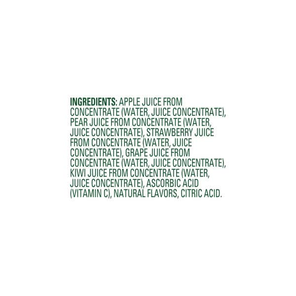 Apple Juice From Concentrate (water, Juice Concentrate), Pear Juice From Concentrate (water, Juice Concentrate), Strawberry Juice From Concentrate (water, Juice Concentrate), Grape Juice From Concentrate (water, Juice Concentrate), Kiwi Juice From Concentrate (water, Juice Concentrate), Ascorbic Acid (vitamin C), Natural Flavors, Citric Acid.
