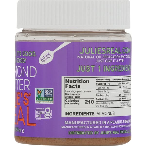 It’s real. It’s good. It’s real good. Room to stir! Julie’s Real uses only 100% all-natural, whole food ingredients to create our incredibly clean, incredibly delicious nut butters. Just 1 ingredient!