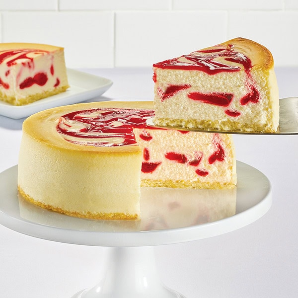 Our Original New York Cheesecake is blended with swirl of perfectly sweet strawberry puree