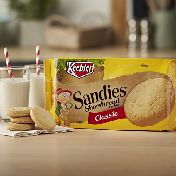 Make snack time a little sweeter with the Keebler Elves and Keebler Sandies Classic Shortbread Cookies. These yummy treats are fresh from the Hollow Tree and feature delightful melt-in-your-mouth shortbread cookies with a hint of butter in every bite. These deliciously crumbly cookies have been baked to golden perfection and are made with pantry-perfect staples like enriched flour and real butter for a satisfying anytime dessert. No matter your age, Keebler Sandies Classic Shortbread Cookies are perfect for snacks at school, the office, traveling, lunchtime, at the game, and more—the Uncommonly Good options are endless. Try them with a serving of milk, coffee, or tea—or take your dessert to the next level and create an indulgent ice-cream sandwich. Satisfy your shortbread cravings with the simple goodness of Keebler Sandies Classic Shortbread Cookies.