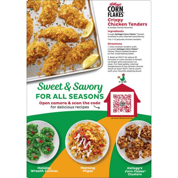 Greet your morning with Kellogg’s Corn Flakes cereal, a healthy, delicious breakfast cereal that helps you start the day right. Includes 1, 9.6-ounce box of this classic family-favorite cereal, perfect for kids and adults. Made to enjoy by the bowlful, each serving contains a good source of 8 vitamins and minerals, is fat free, and contains no artificial colors or flavors; you can also use these flakes to prepare numerous sweet and savory dishes. Kellogg’s Corn Flakes can be used whole and incorporated into casseroles, crushed for your favorite Corn Flakes Crusted Chicken recipe, or added to a yogurt parfait for some extra crunch. Enjoy an irresistible bowl of Kellogg’s Corn Flakes for an after-school snack or busy, on-the-go moments. Just add your favorite dairy or nut-milk to Kellogg’s Corn Flakes, the Original and Best.